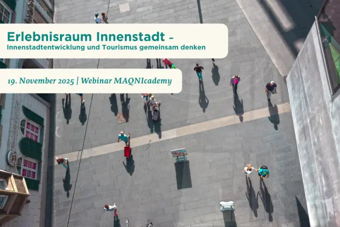 MAQNIFY bietet mit der Webinar-Reihe "MAQNIcademy – Wissen kostenlos, aber nicht umsonst“ den nächsten Impuls zum Thema „Erlebnisraum Innenstadt – Innenstadtentwicklung und Tourismus gemeinsam denken“ an.